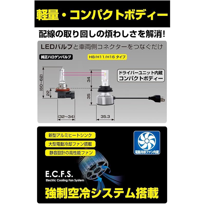 商品名:IPF ヘッドライト フォグランプ LED 車用 H8/H11/H16 4400lm 6200K ホワイト 12V24V兼用 2本入 新車検対応 ドライバーユニット一体型 冷却ファン内蔵 コンパクトサイズ 配光重視 キレの良いカットライン JL62