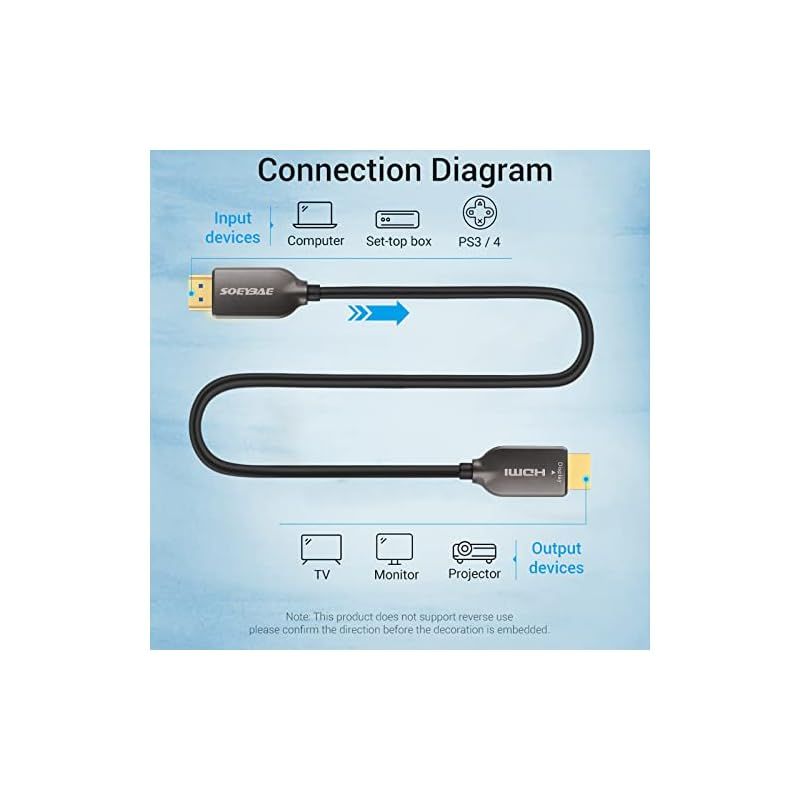 【方向性があり】光ケーブル方向性を持つ,“Source”側をビデオプレーヤー、PS4/PS5、TVボックス、ノートパソコンに接続し、“Display”側をテレビ、プロジェクター、モニターに接続するだけです。次に、高解像度の画像を楽しむことができます。
