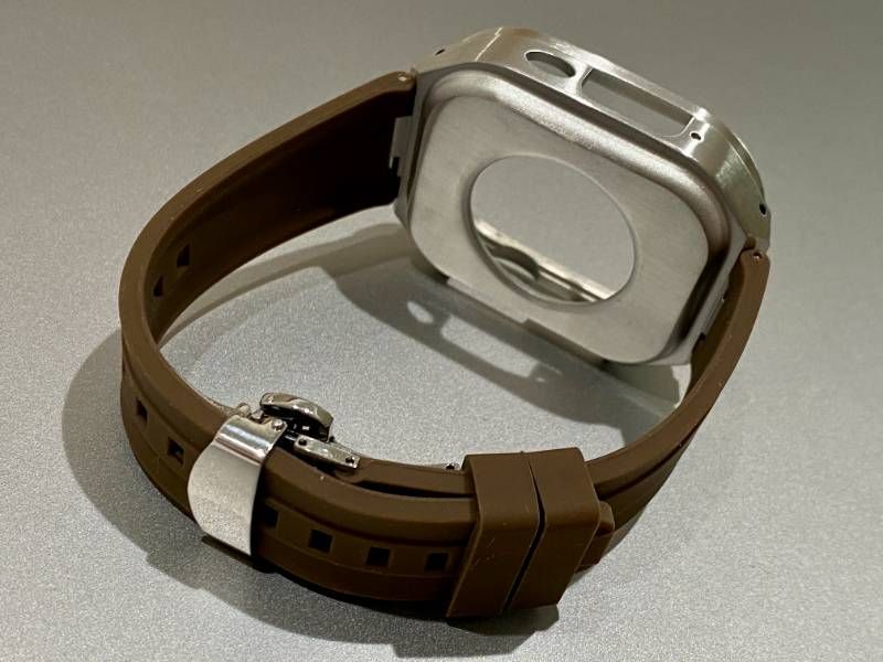 ブラウンシルバー AppleWatchカバーケース 脱着 簡単 保護 49㎜ Ultra カスタム ステンレス ベルト ラバー バンド アップルウォッチ対応