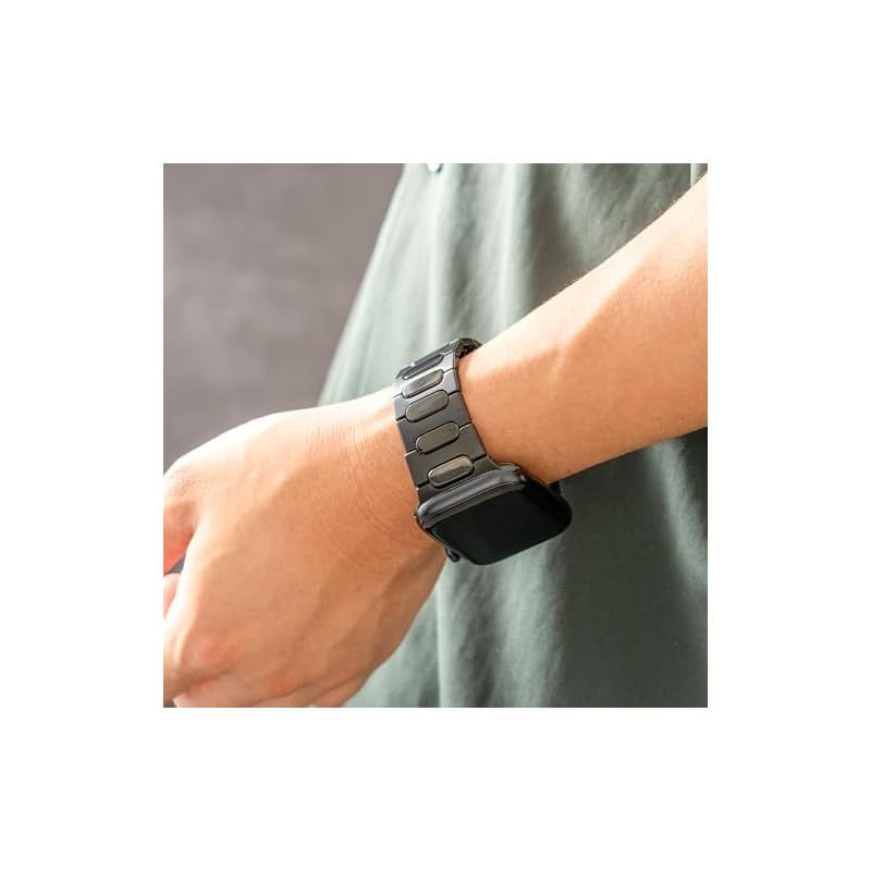?あなたの腕にラグジュアリーな印象をプラスするブラックリンクチタンバンド。 チタン素材を使用し、黒一色のデザインがシンプルかつエレガントな輝きを放ちます。 ビジネスからカジュアルまで幅広いシーンにマッチし、腕元を引き締める重厚な存在感が特徴です。 しっかりとした作りで、耐久性も抜群。 装着と調整が容易で、Apple Watchをさらにスタイリッシュに演出するこのバンドは、デザインと機能性を兼ね備えた大人のためのアイテムです。