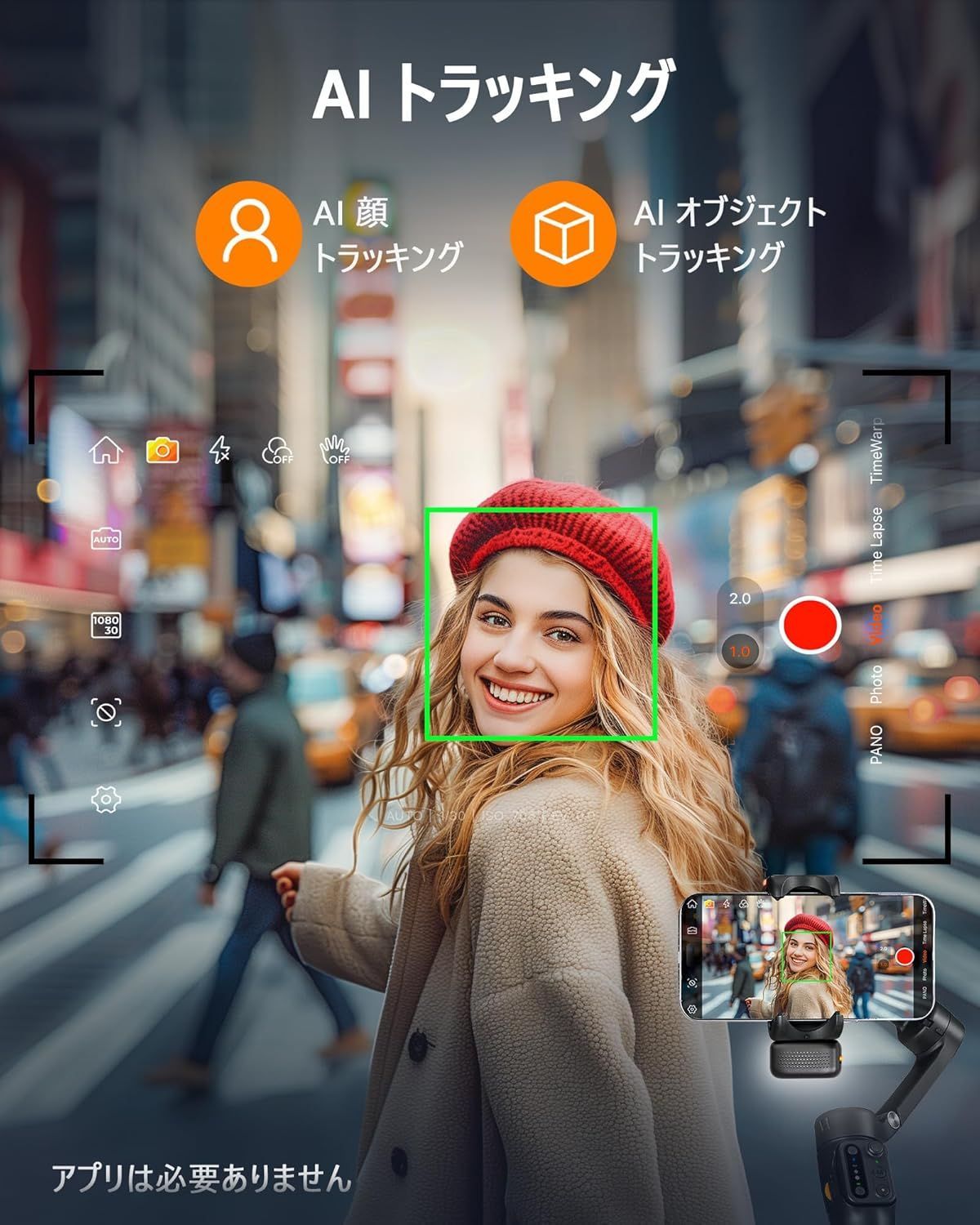 【アプリに制限されないAIトラッキング】hohem V3 スマホ用ジンバルには、マグネット式 AI追跡機能が搭載されており、顔の追跡に制限がなく、常に被写体を中心に追跡して撮影することができます。また、このAI追跡技術はBluetoothやアプリに接続する必要がなく、特定のジェスチャーを行うだけで追跡を開始または停止できます。hohem V3を使えば、よりプロフェッショナルなビデオ撮影が簡単になります。