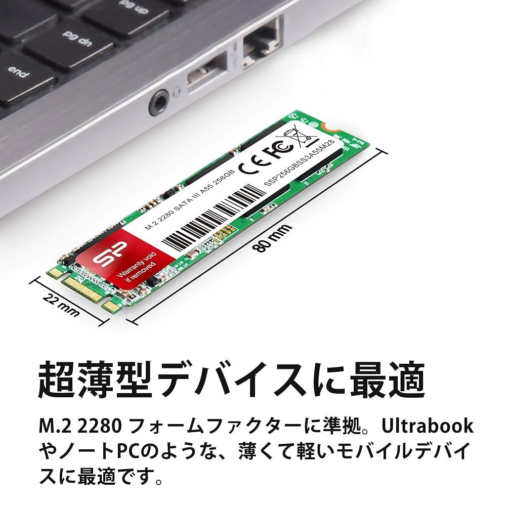 M.2 2280 フォームファクター (80 × 22 x 3.5 mm)に準拠し、M55 M.2 2280 SSDはUltrabookや