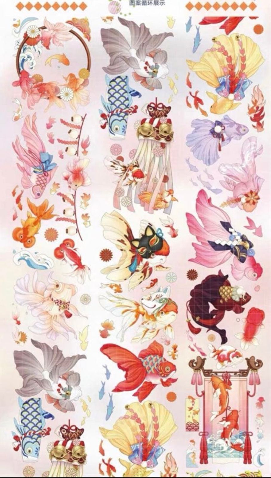 镭射金 7 5 cm 10 m 金鱼姬 海外マ スキングテープ 海外マステ 和柄 金魚