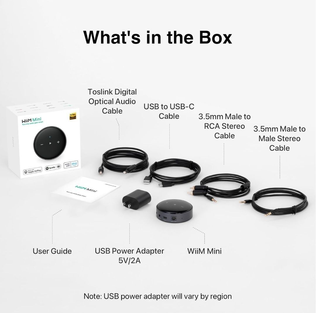ご注意ください:1.AirPlay 受信専用 – WiiM MiniはAirPlayストリームの受信に対応していますが、他のAirPlay対応スピーカーやデバイスへの送信はできません。2.Google Cast非対応 – 他のWiiMデバイスとは異なり、WiiM MiniはGoogle Castを使用したストリーミングには対応していません。