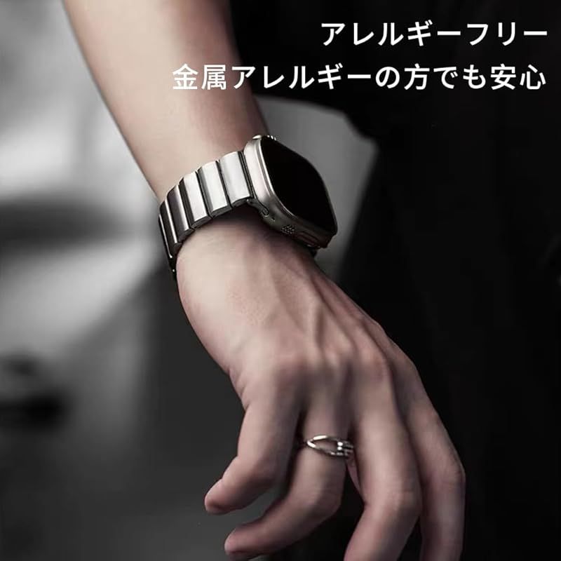 商品名:【新品】 コンパチブル for apple watch バンド チタン製 マグネット式クラスプ 取り外しボタン 調整工具不要 軽量 丈夫 iWatch SE/Series Ultra3/Ultra2 Ultra 10 9 8 7 6 5 4 3 2 1対応 3