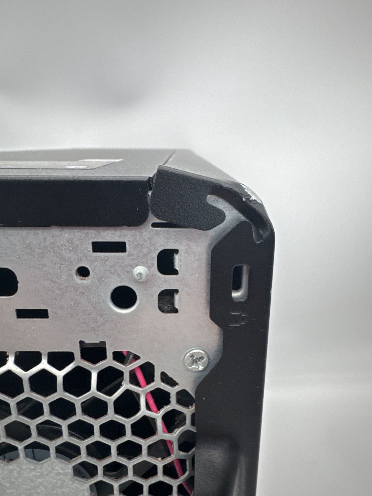 ■ケースの背面の右上部、ケンジントンロックに若干歪みがありますのでご了承ください(写真5,6参照)。ケースの開閉は問題なく行えます。