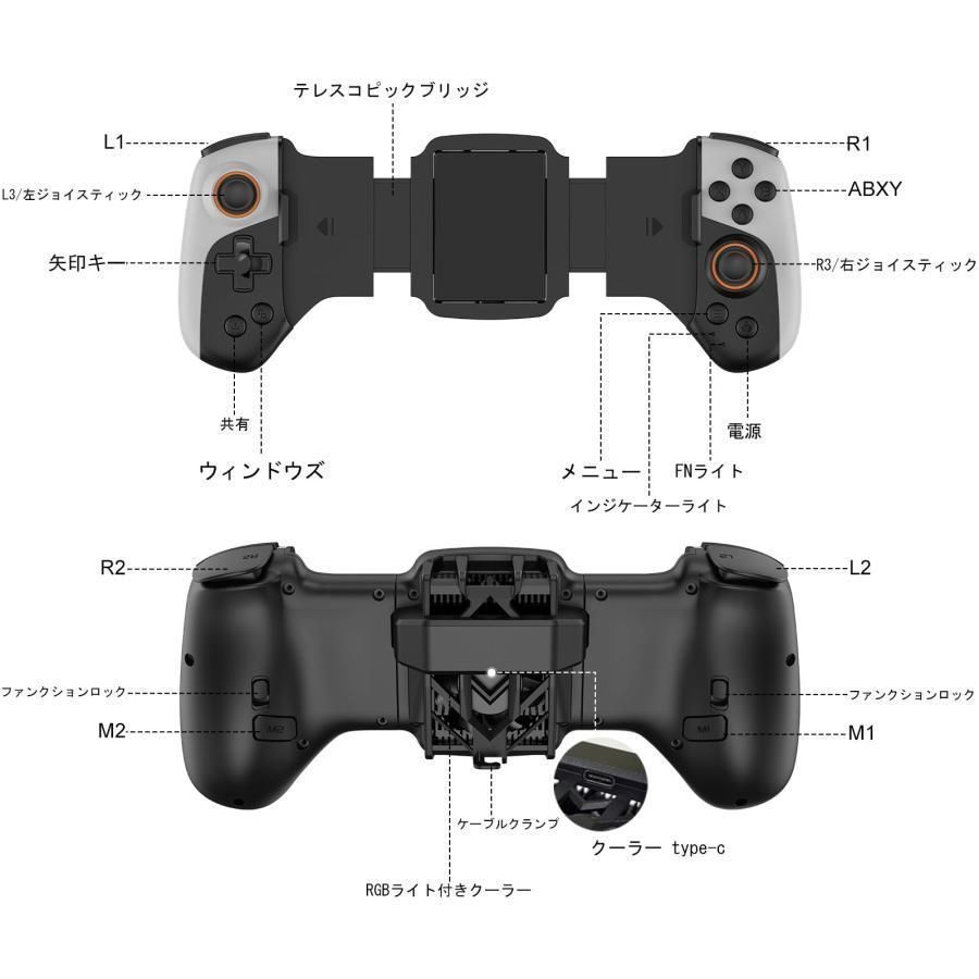 iPhone 15 14 13 Android iOS Switch PC用モバイルゲームコントローラ RGBライト付きクーラーファン ターボ マクロプログラマブル