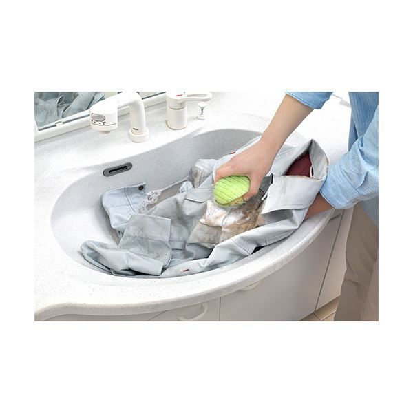 洗濯機に入れる前に汚れた部分をこすって洗うのに使えるクリーナー。にぎりやすい手のひらサイズで両面使えます。