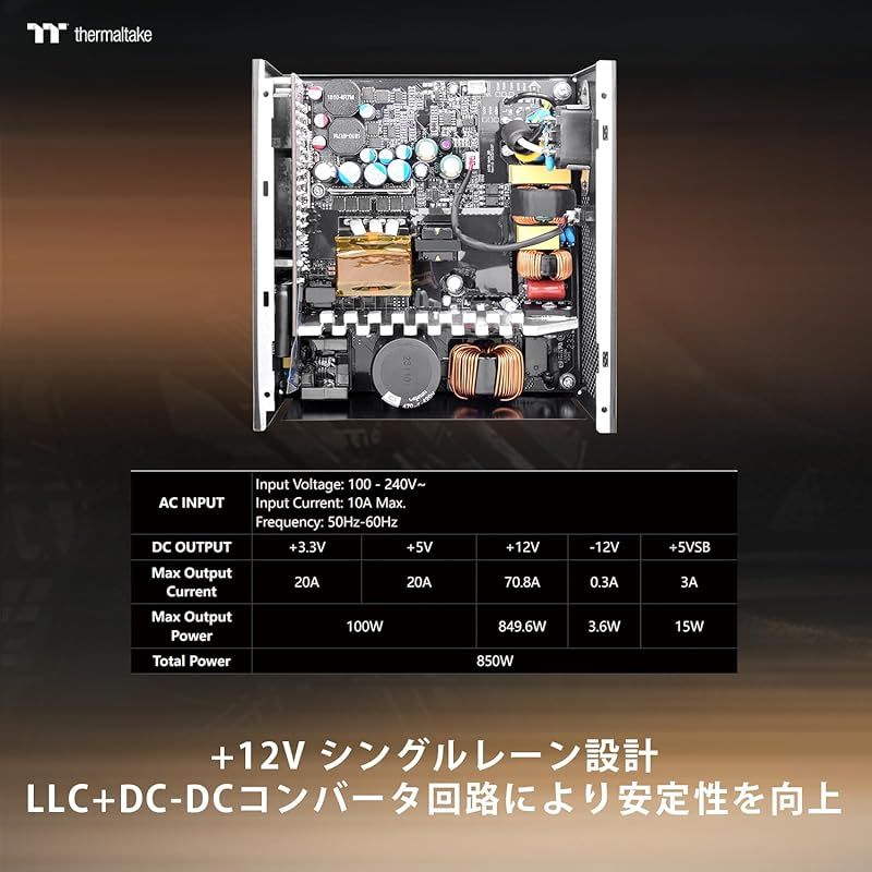 Thermaltake GT 850 W ATX 3.1 PCI Express 5.1対応 80 PLUS GOLD PC電源ユニット PS-TPT- -3 PS 1496 0