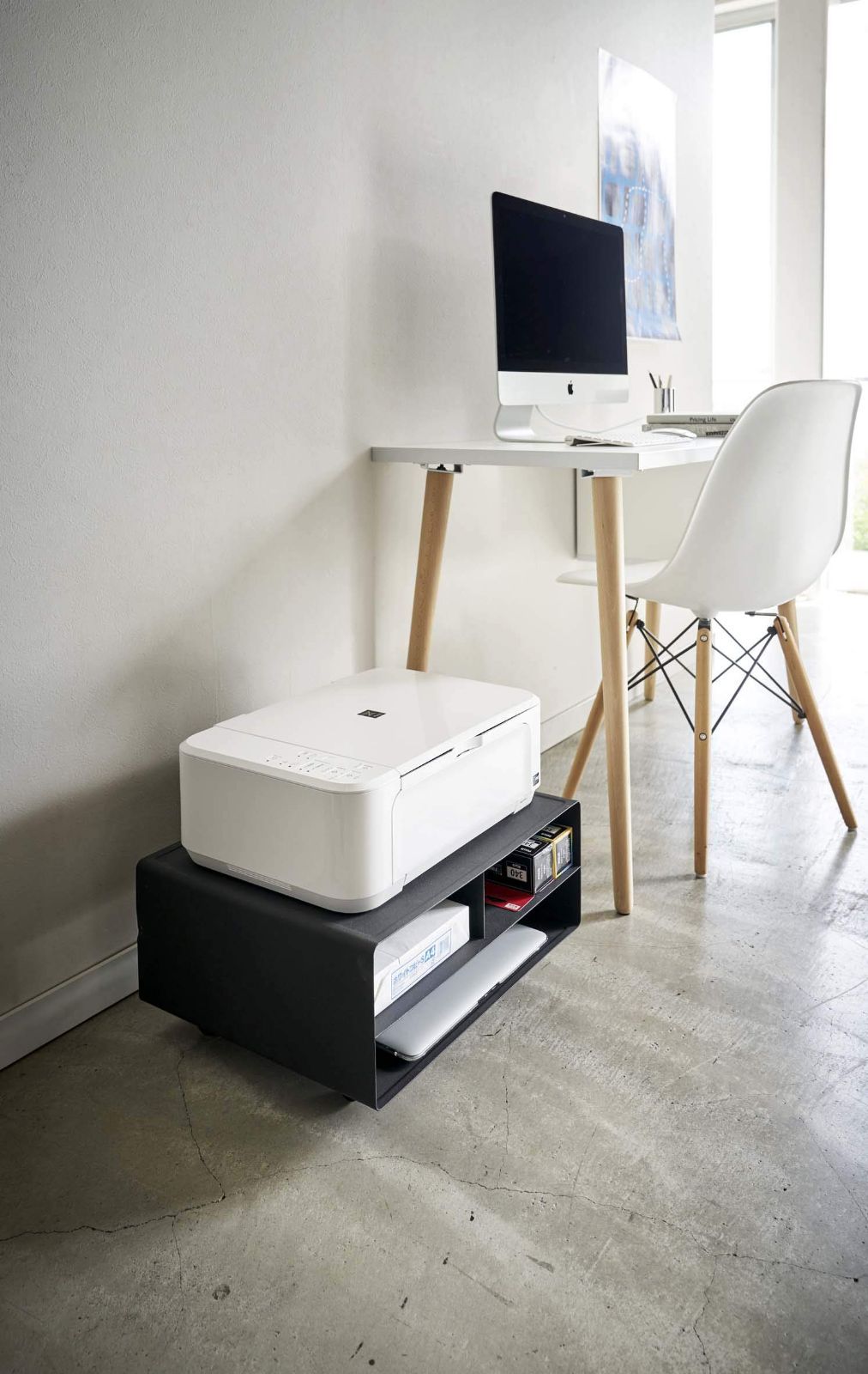 山崎実業(Yamazaki) ツーウェイプリンター収納ラック ブラック 約W48XD37XH19cm タワー 4349