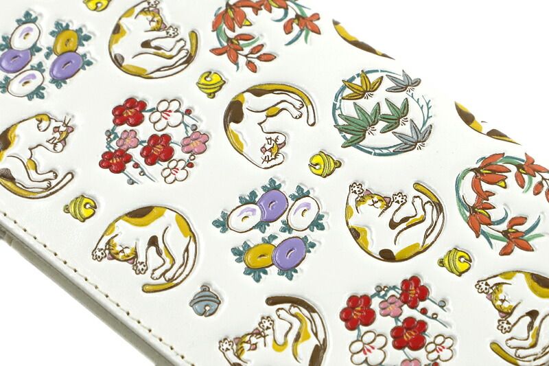 スマホケース スマホカバー 手帳型ケース 手帳型 白地 猫 ねこ ネコ ミケ 革 文庫革 天然皮革 浅草文庫 友禅染 型友禅 手描き友 No.10-5081