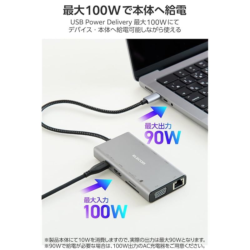 USB Type-C(TM)コネクターを経由して最大100W(※)の電力をデバイス/パソコン本体に供給するUSB Power Deliveryに対応しています。