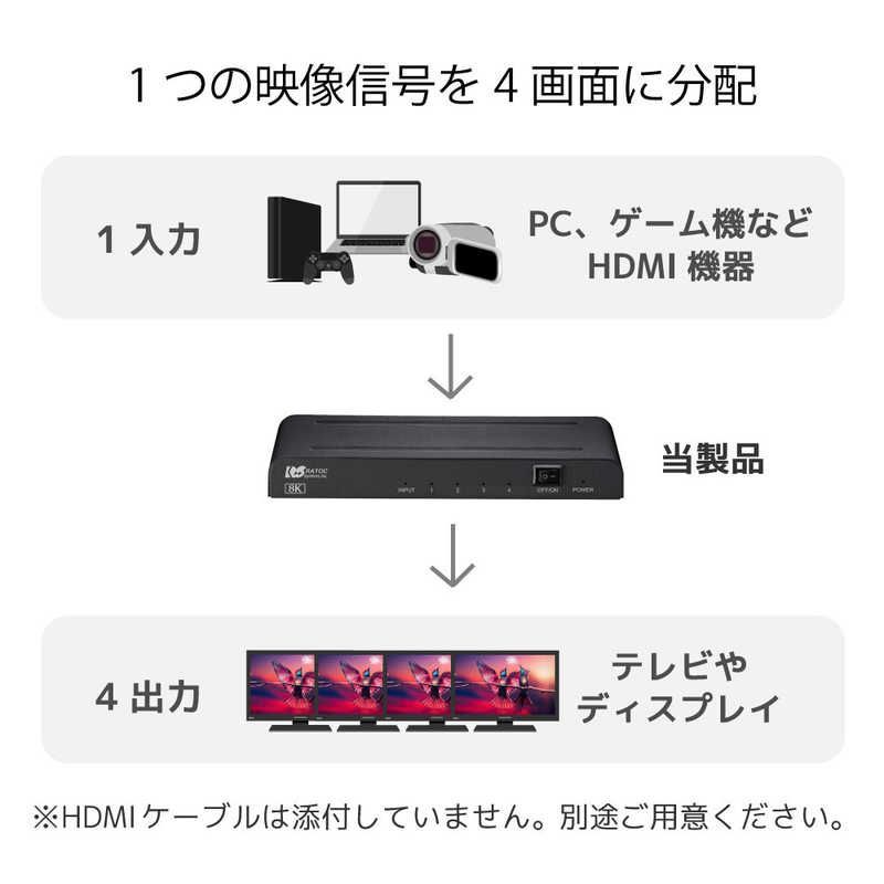 ラトックシステム 8 K対応 1入力4出力 HDMI分配器 RS-HDSP 4-8 K