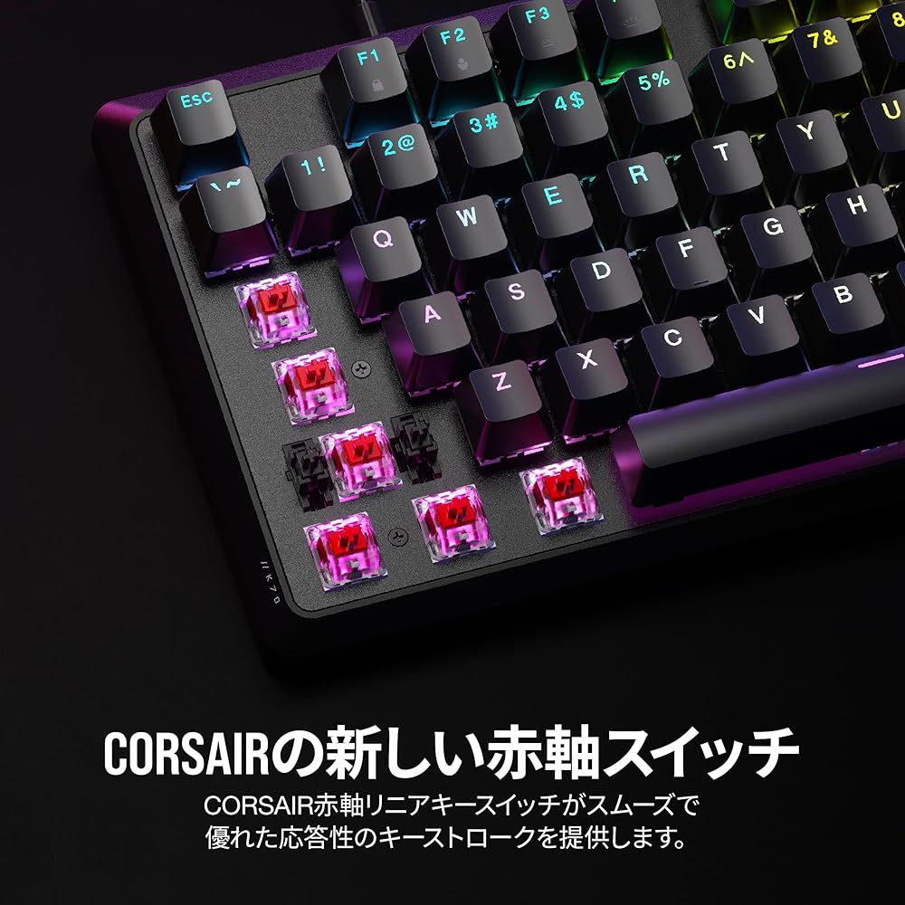 CORSAIR K 70 CORE リニア RGB 赤軸ゲーミングキーボード キーキャップ交換 日本語配列 ブラック CH-910971 E-JP