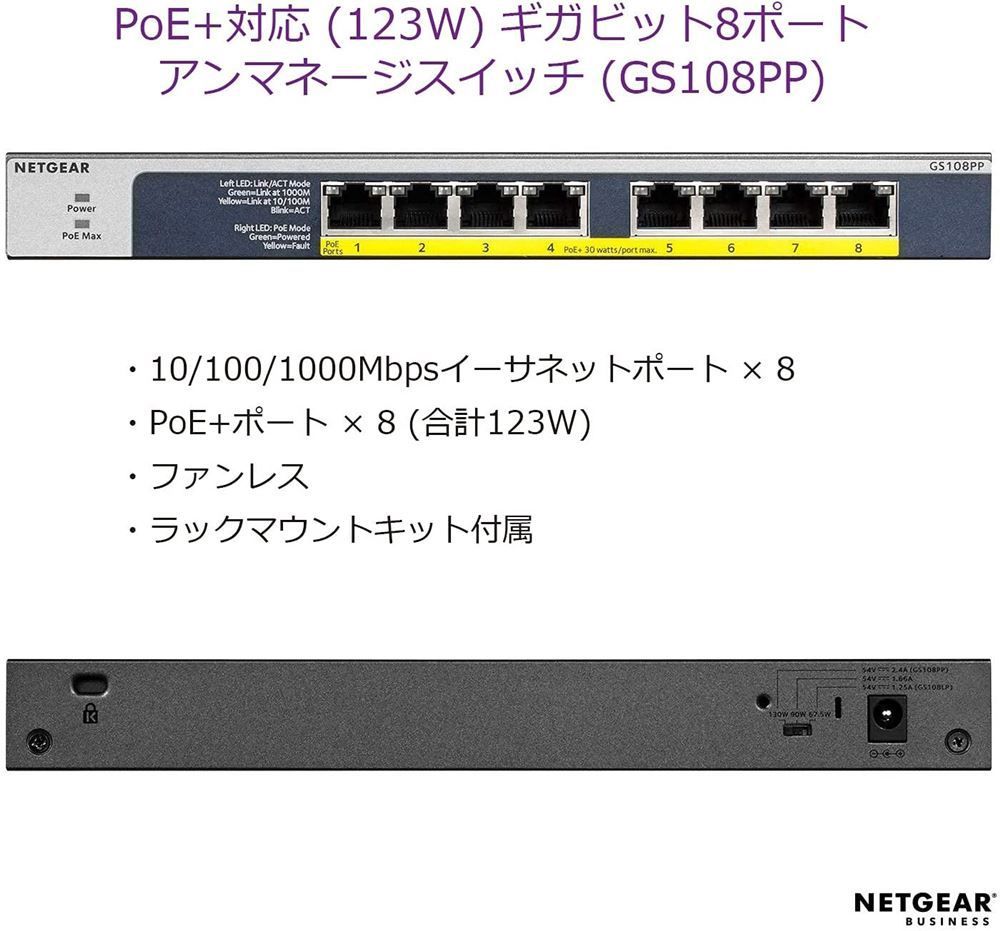 HY NETGEAR ネットギア GS 108 PP ギガビット 8ポート PoE スイッチングハブ アンマネージスイッチ 最大123 W給電 ファンレス 静音設計 デスク 壁掛 ラック対応 一部地域を除く 003