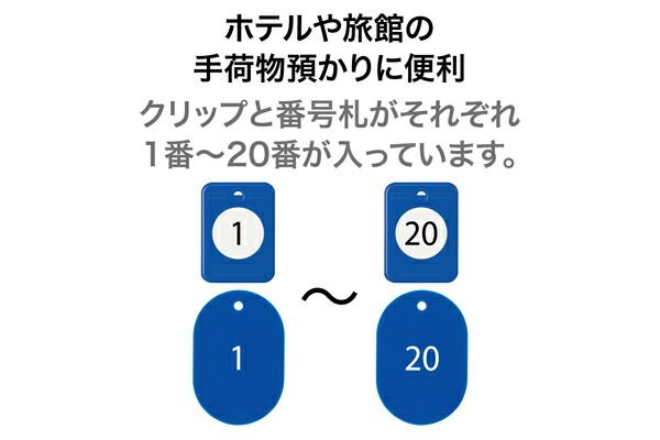 クリップと番号札で荷物の管理ができます。