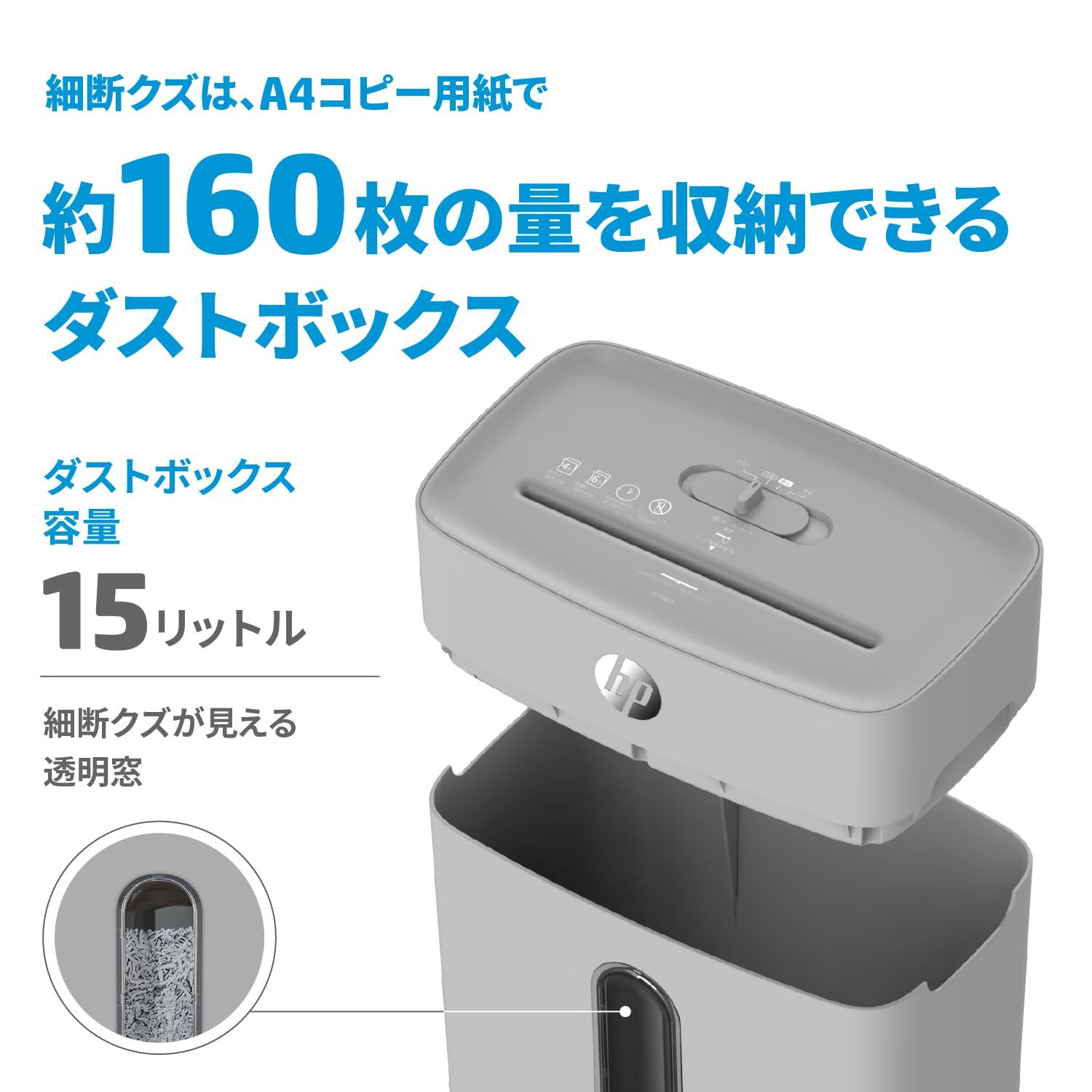 HP 電動シュレッダー 家庭用 15 L 1 3人用 静音モード付き コンパクト ミニクロスカット5 x 18㎜ 同時細断 リモートワーク 在宅勤務 オフィス 大容量ダストボックス 収納 小型 スリム Q 1506 CC