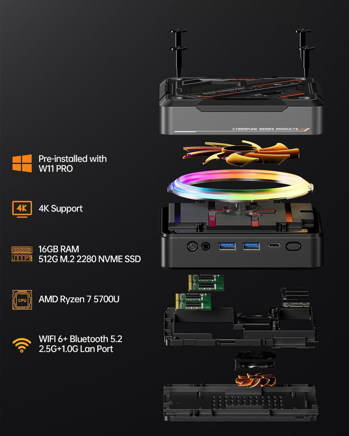 【豊富な拡張性】16GB DDR4 3200MHzデュアルチャネルメモリを搭載し、最大で64GB(32GB+32GB)まで拡張可能です。NVMe M.2 2280 SSDスロットを搭載し、最大で4TBまで拡張可能で、2.5インチHDDを追加することもできます。これにより、いつでも簡単にストレージをアップグレードすることができます。さらに、Windows 11 Proシステム、WiFi 6、Bluetooth 5.2を搭載しており、購入後すぐに使用可能です。