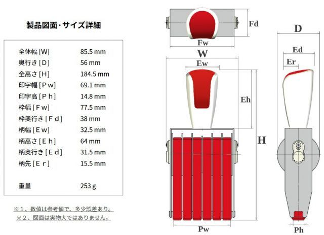 オフィス用品としては勿論、それ以外でも非常に優れた回転ゴム印です。