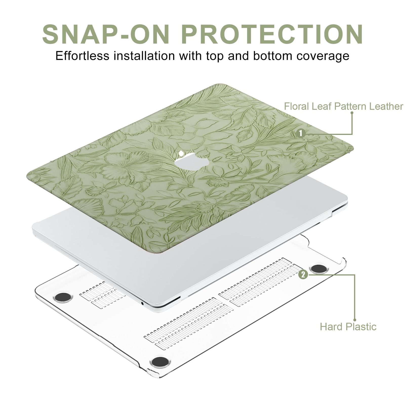 iPAPA MacBook Air 13インチケース 2025 リリース M 3 A 3113 2 2681 エレガントな質感のレザーハードシェルケース キーボードカバー 1 グリーンエンボスフローラル