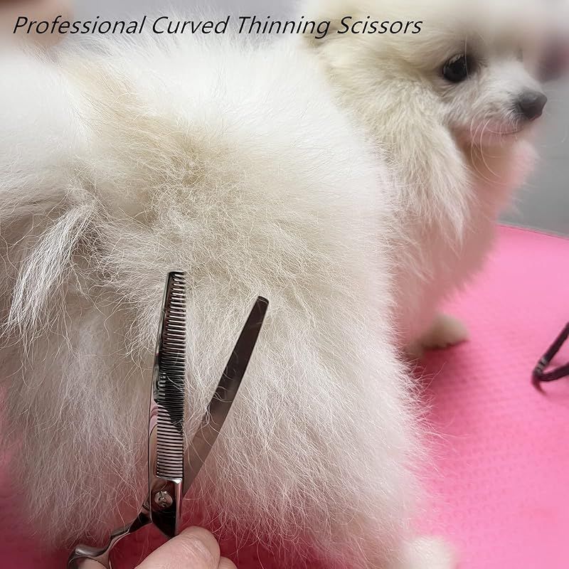犬用カーブ剪定鋏 刃 7 0インチ 30%の間引き率 軽量 ペットグルーマーや家族のDIY用に設計されています 0