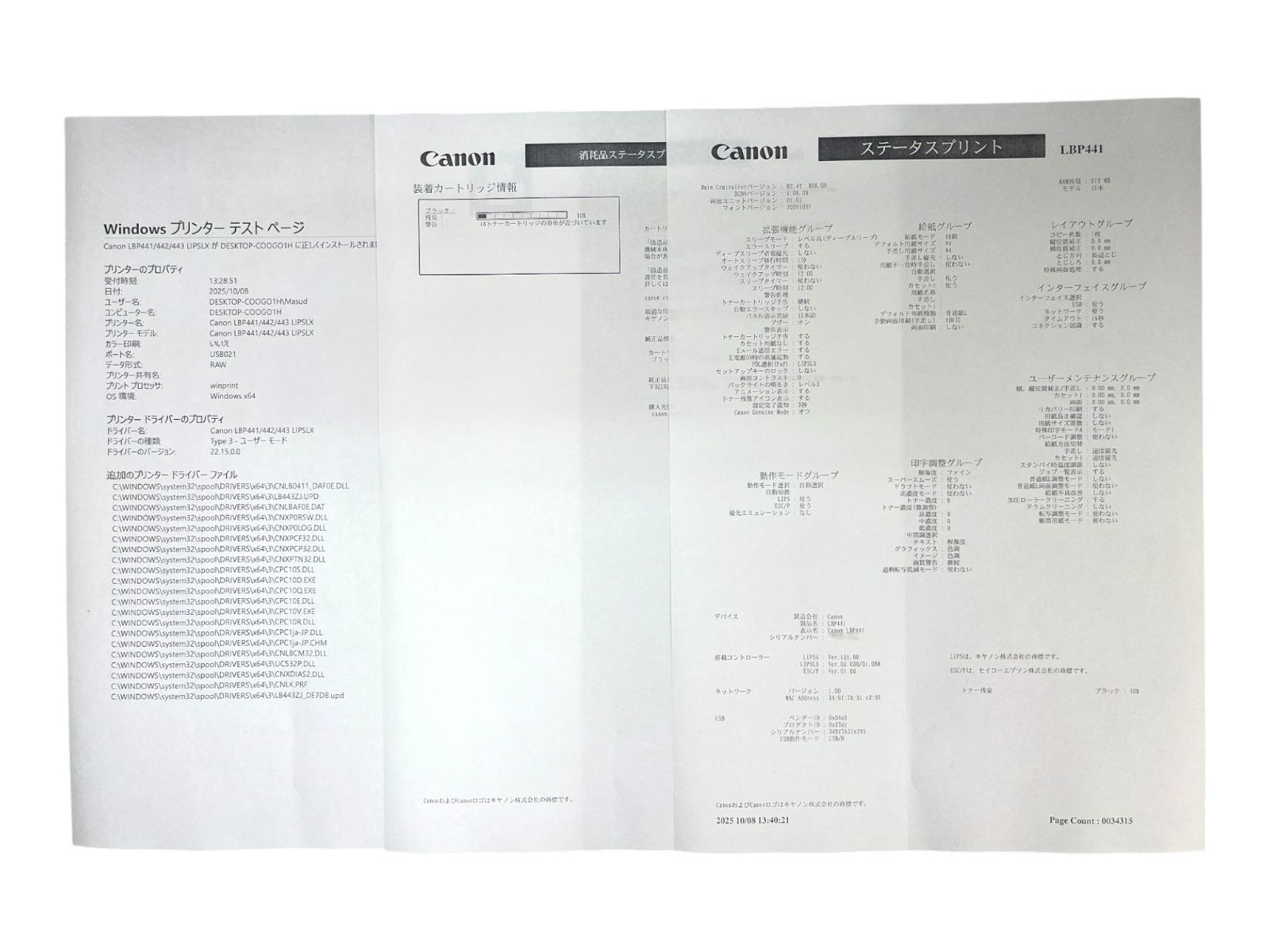 各機能の動作に問題はなく、印刷品質も良好です(写真参照)。