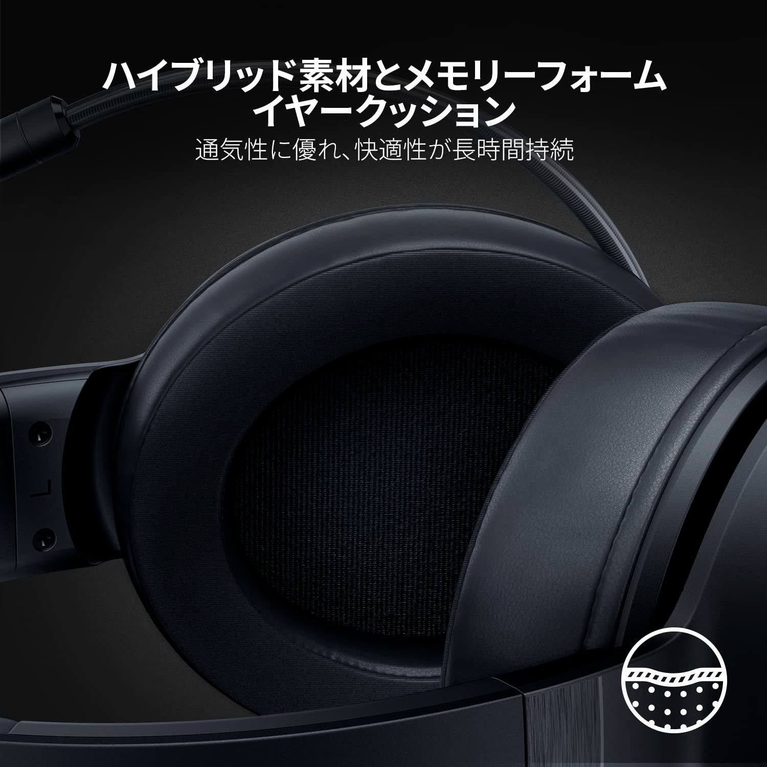 【ハイブリッドな素材とメモリーフォームイヤークッション】 通気性に優れたソフトなクッションにより、長時間のゲームでも快適な着け心地が続きます。