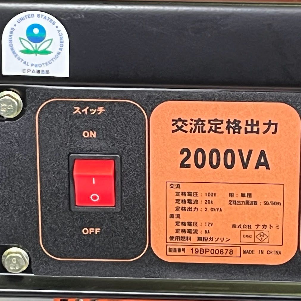 【新品/直接引取限定】Nakatomi/ナカトミ エンジン発電機 EG-2000 動作時間11時間 50Hz/60Hz(切替式)オイル入り燃料なし