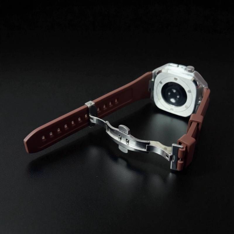 シルバーブラウン 組み立て 別注ラバー アップルウォッチケース カスタム カバー 保護 44 mm 45 46 アップルウォッチカスタム series 1 2 3 4 5 6 7 8 9 10 11 SE バンド ベルト