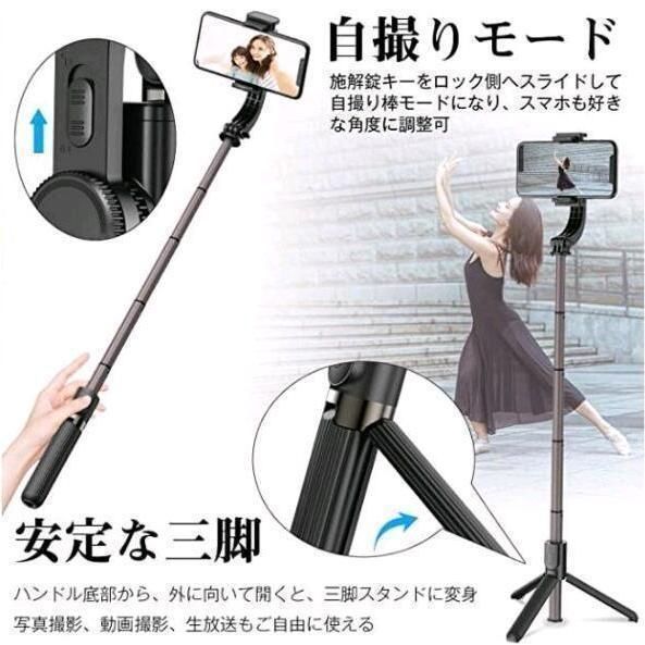 自撮り棒 スマホジンバル スタビライザー スマホ三脚 手振れ防止 携帯電話 折りたたみ 軽量 手持ち単軸片