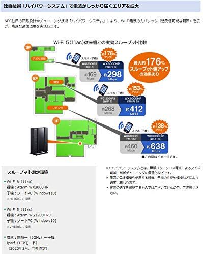 NEC 無線LAN WiFi ルーター Wi-Fi6 (11ax) / Aterm WX3000HP 2ストリーム (5GHz帯 / 2.4GHz帯)