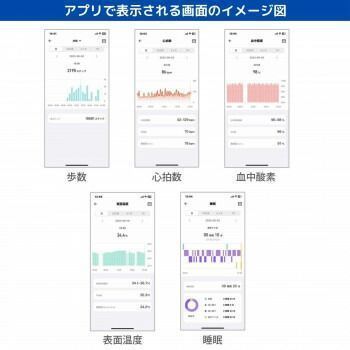 メイン画面(時刻表示)表示中に本体の左のボタンを押すと、機能メニュー画面が表示されます。また、スマートウォッチなので、横にスワイプすると自分が厳選した必要とする機能(お気に入り画面)が表示されます。スマートフォンのアプリと接続すると、「歩数・心拍数・血中酸素・表面温度・睡眠」の過去の履歴データを閲覧、比較することができますので、健康管理に役立ちます。