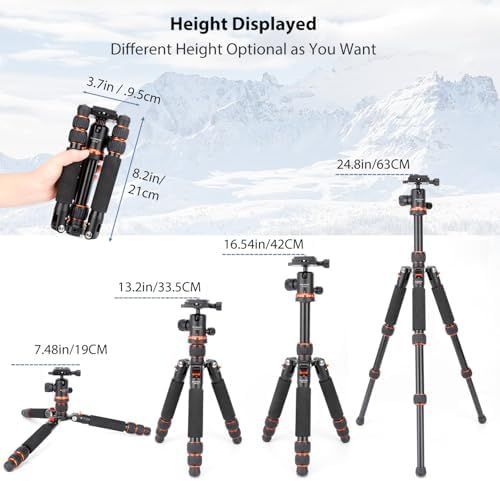 Koolehaoda ミニ三脚アルミニウム合金卓上三脚高さ21-63.5 cm デジタル一眼レフカメラビデオカムコーダー用キャリングバッグ付き 最大荷重10 kg- TMP-223オレンジ