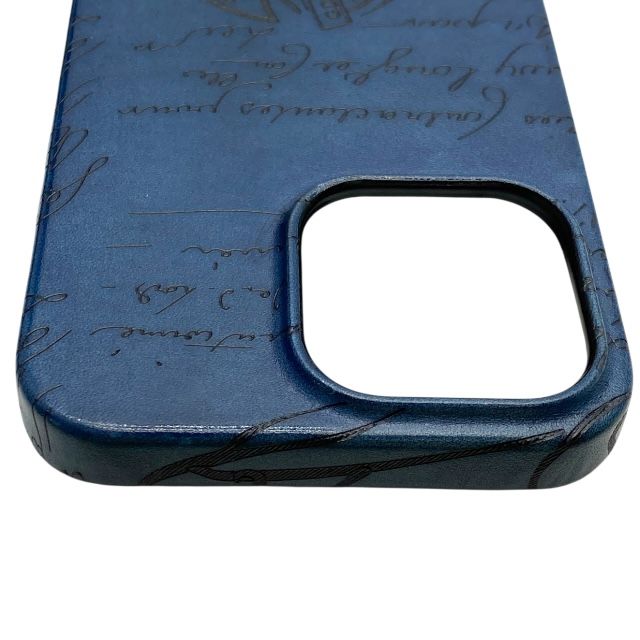 ベルルッティ Scritto Leather スクリットレザー iPhone 14 ProMax ケース iPhoneケース スマホケース レザー ネイビー Berluti