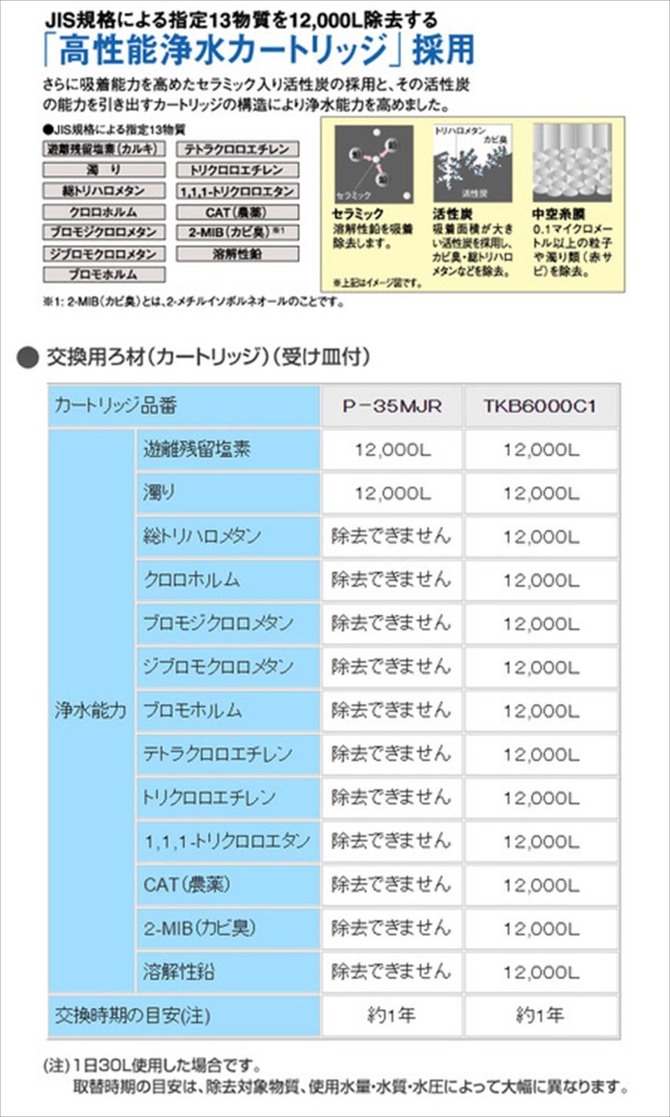 パナソニック(Panasonic) 交換用ろ材(カートリッジ) TKB6000C1