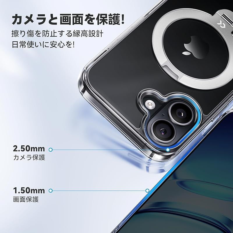 【360°回転スタンドで、好きな角度も姿勢もラクに】朝の通勤電車でSNSをチェックしたいときも、夜のリビングでビデオ通話したいときも、両手フリーでスマホを固定。“カチッ”と心地よい音とともに、縦横でも360°回転&0~170°までの無段階調整が可能。90度の垂直な角度、自撮りでもラクラク。誰でも“ちょうどいい”角度が見つかる使いやすさで、見えにくさにイライラする日々にさようなら。折りたたんでしまえばスマホリングに早変わり。片手でもしっかり安定。航空宇宙グレードの強化素材×改良ヒンジ構造で、30,000回の折りたたみテストをクリアし、耐久性は従来比80%向上。対応機種:iphone17 ケース