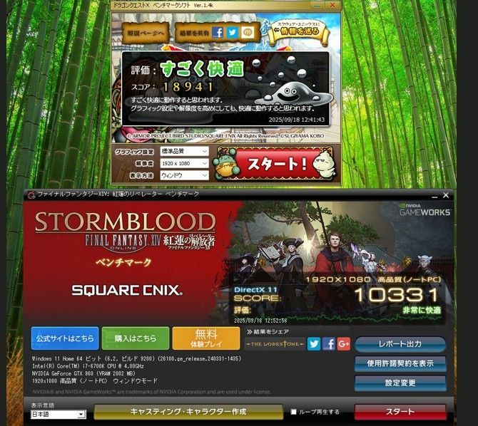 ・CPU:インテル core i7-6700K @4.00GHz