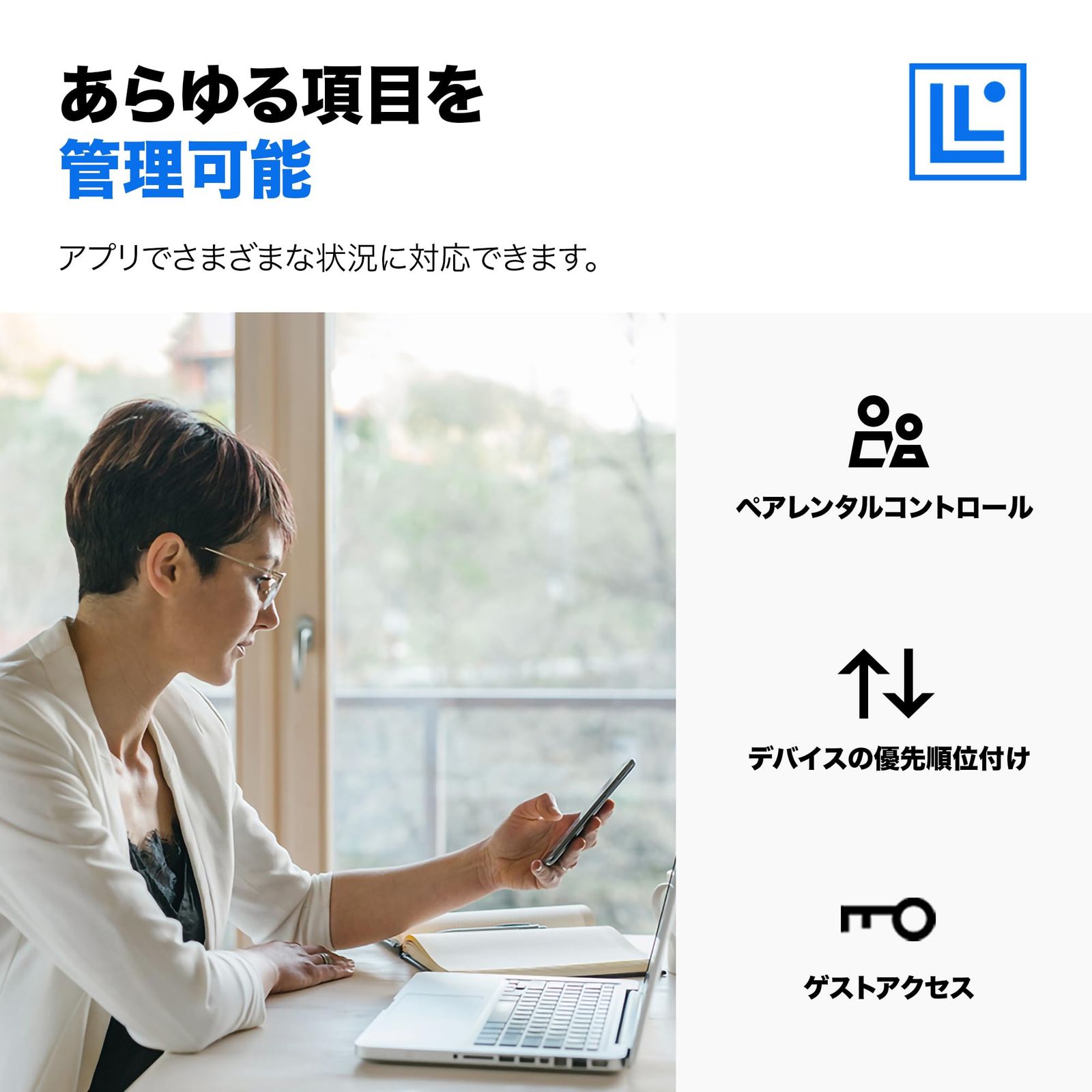Linksysアプリを使えば、ごく短時間でインターネットに接続でき、ネットワークの管理も容易になります。ネットワークのリモート管理、ゲスト用WiFiの設定、ペアレンタルコントロール機能の有効化も、このアプリで行えます。セキュアなホームネットワーク: