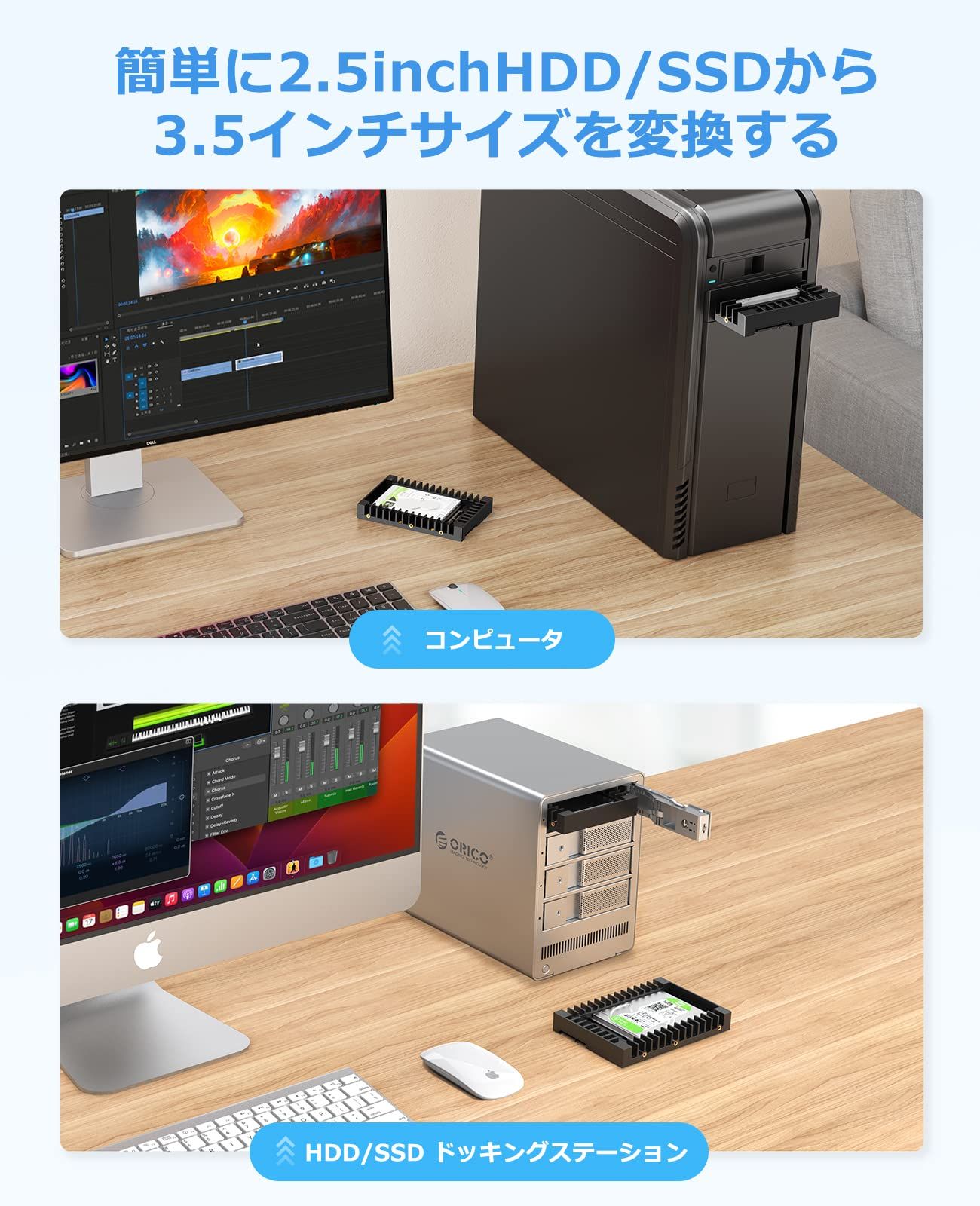 ORICO 2.5 → 3.5変換 2.5インチ HDD SSD 変換マウンタ SATAインターフェース内蔵 HDDケース 3.5インチ 変換ブラケット ネジ付き ブラック -