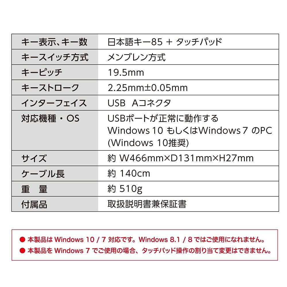 ●キー表示、キー数:日本語キー85+タッチパッド