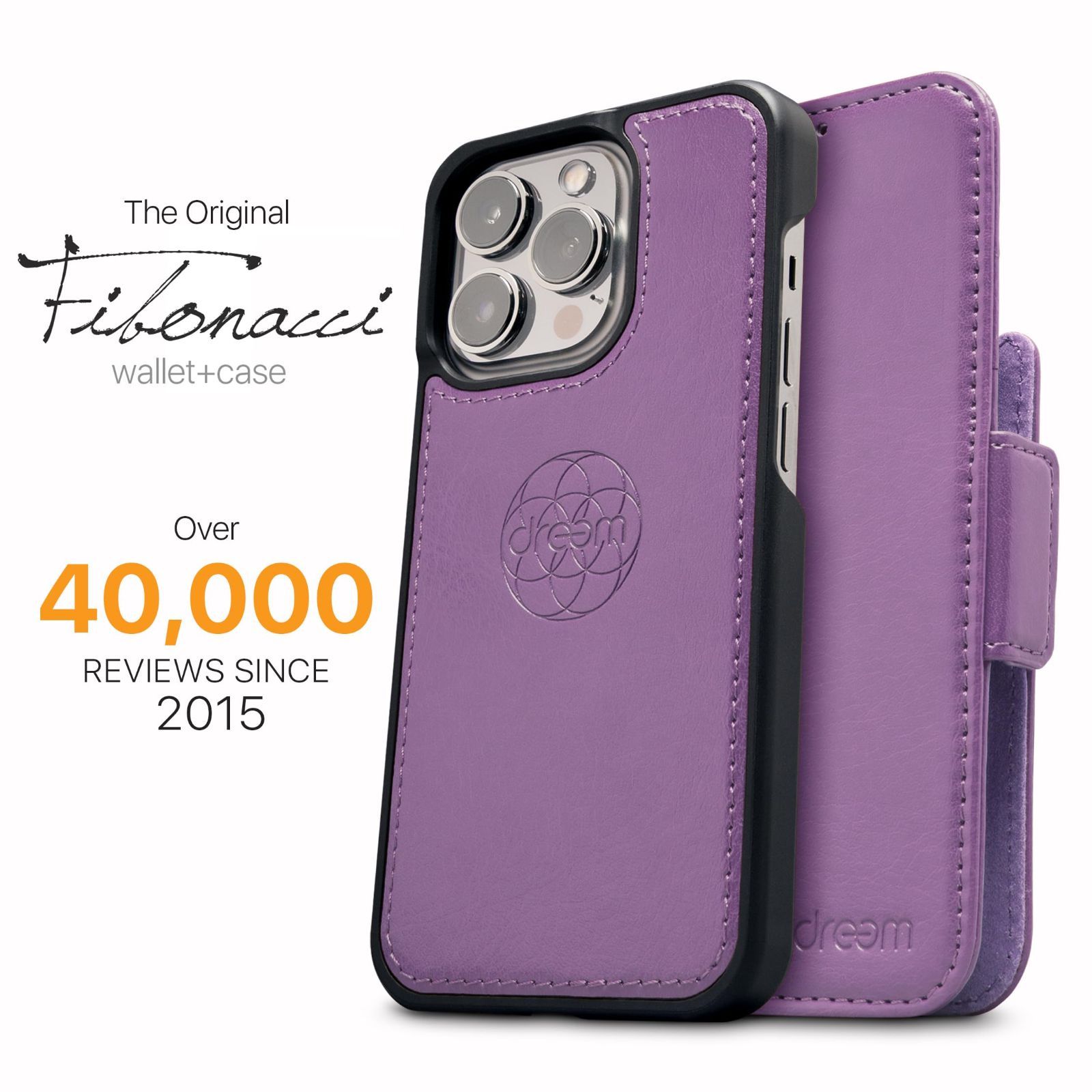 Dreem フィボナッチ(Fibonacci)2イン1 財布型ケース Apple iPhone 14 Plus用 - 高級ヴィーガンレザー製 マグネット着脱式 耐衝撃 携帯電話ケース RFIDカード保護機能 2通りに使えるフリップスタンド付き - パープル