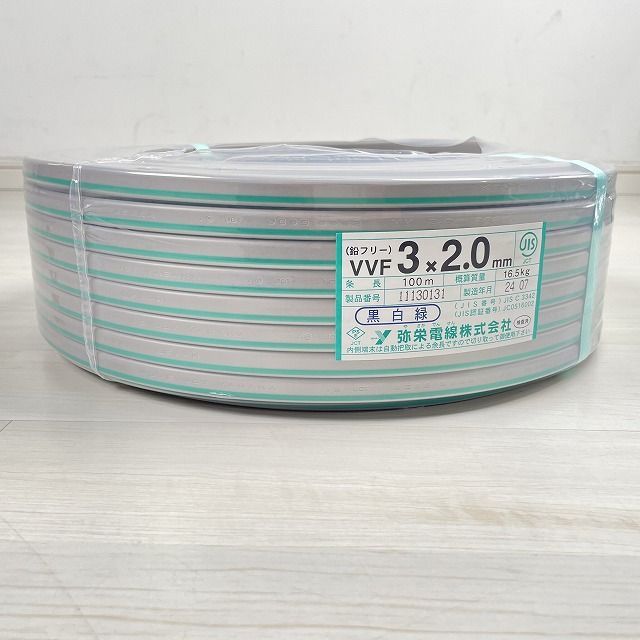 VVF .0 VVFケーブル 黒 白 緑 100m 製 弥栄電線