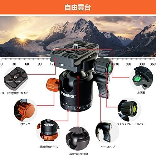 北 ダック カメラ三脚 一脚 一眼レフ スマホ三脚 全高165 cm 一脚伸縮可変式 5段階伸縮 自由雲台 360度回転可 携帯電話ホルダー付き - 運動会 登山 野外撮影用 持ち運びに便利です 黒 オレンジ色 日本語取扱説明書付