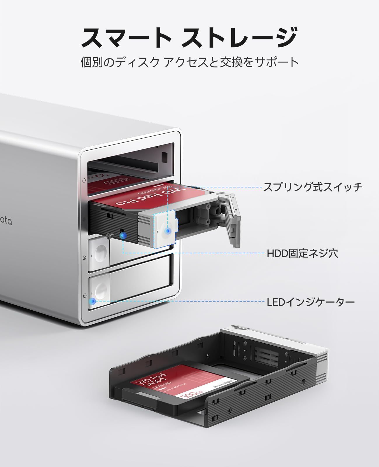 【使いやすい設計】 デイジーチェーンHDD ケースは4つの独立したディスクベイを搭載し、単一ディスクのイジェクト機能をサポートし、他のディスクベイトのワークフローを中断することなく、迅速な交換やアップグレードに便利です。プラグ&プレイをサポートし、追加ドライバをインストールする必要がなく、複数の主流オペレーティングシステムと互換性があり、便利で効率的なデータストレージソリューションを提供します。