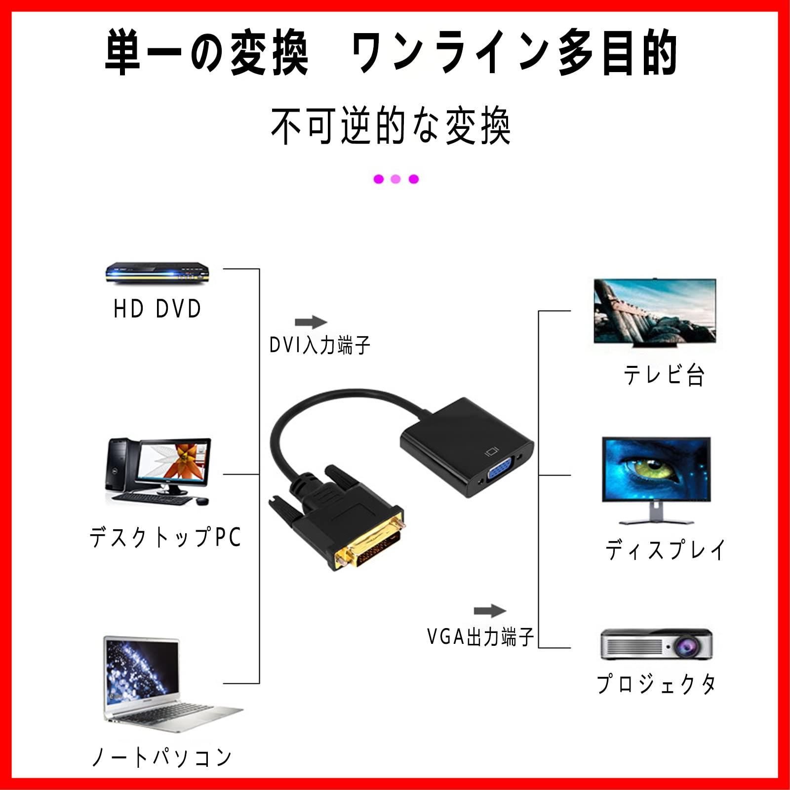 【対応機種】DVI入力装置:ビデオカード、ビデオカード、マザーボード、デスクトップ、DVDプレーヤーなどに対応。各種VGAポートを適用するディスプレイ:ソニー、DELL、HP、ACERディスプレイ、LEDテレビ、KVMスイッチ、プロジェクタなど(VGA端子)。