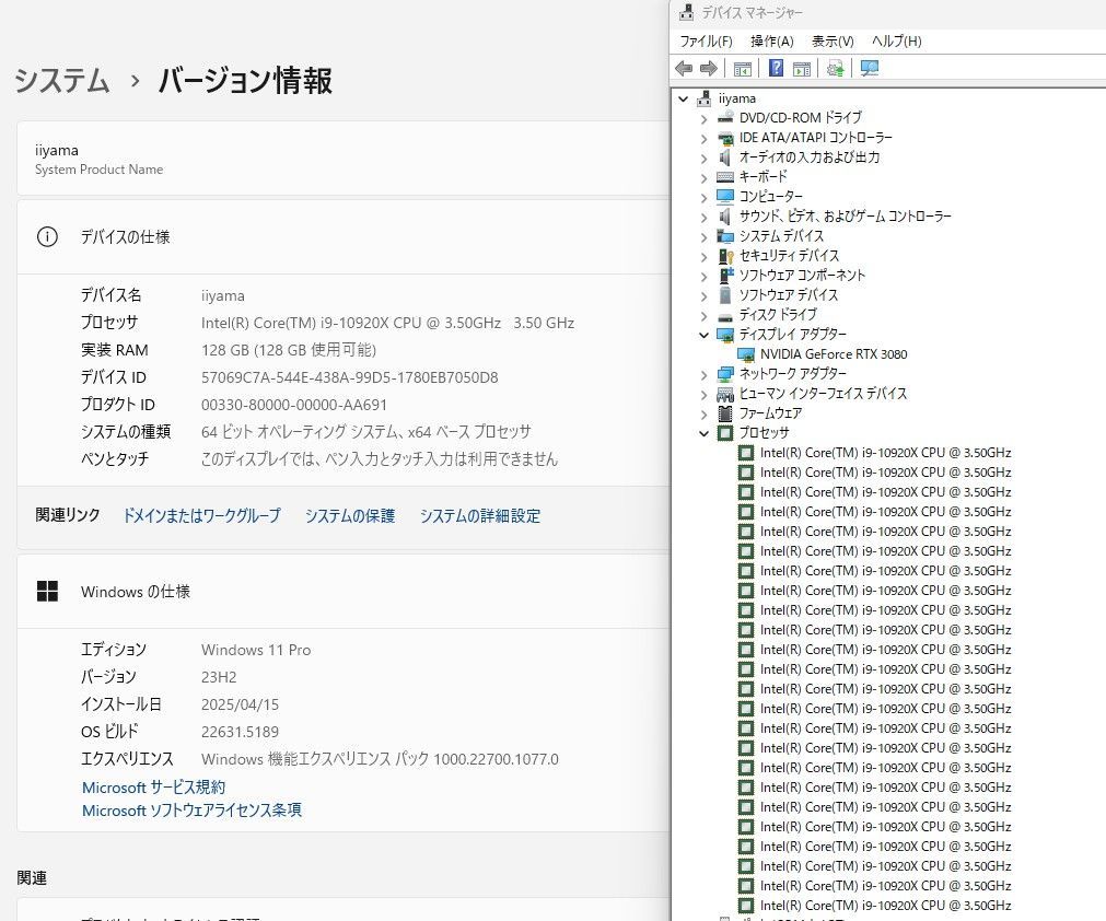 ✅i9-10920X / RTX3080 / メモリ128GB / 新品1TB SSD搭載!