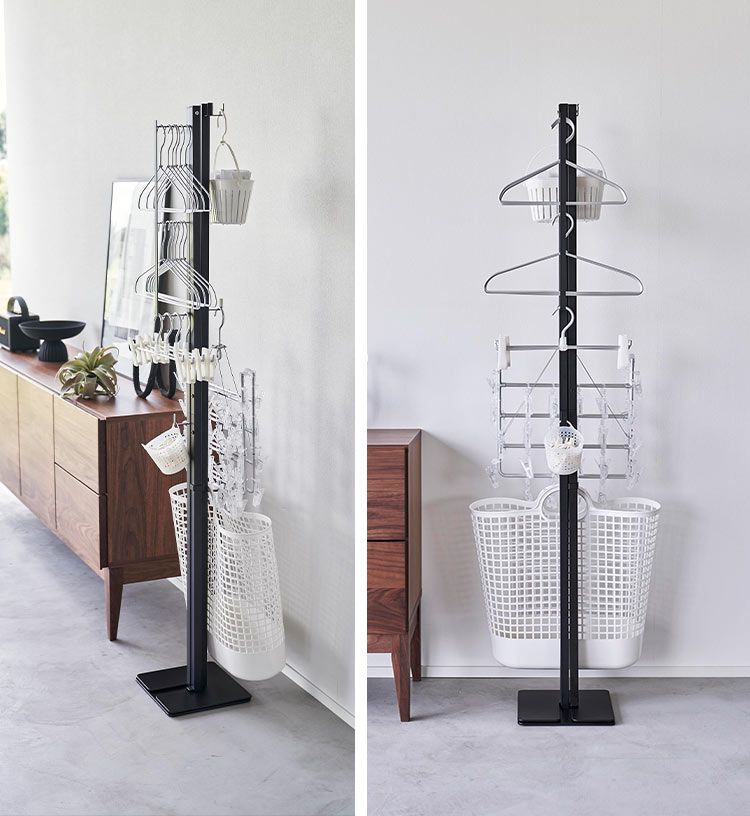 山崎実業 折り畳み室内物干し タワー tower 6619 6620 物干し竿 室内 部屋干し ハンガーホルダー 1 5 m ポールハンガー 丈夫 洗濯 おしゃれ シンプル 軽い コンパクト 収納 折りたたみ 式 白 黒