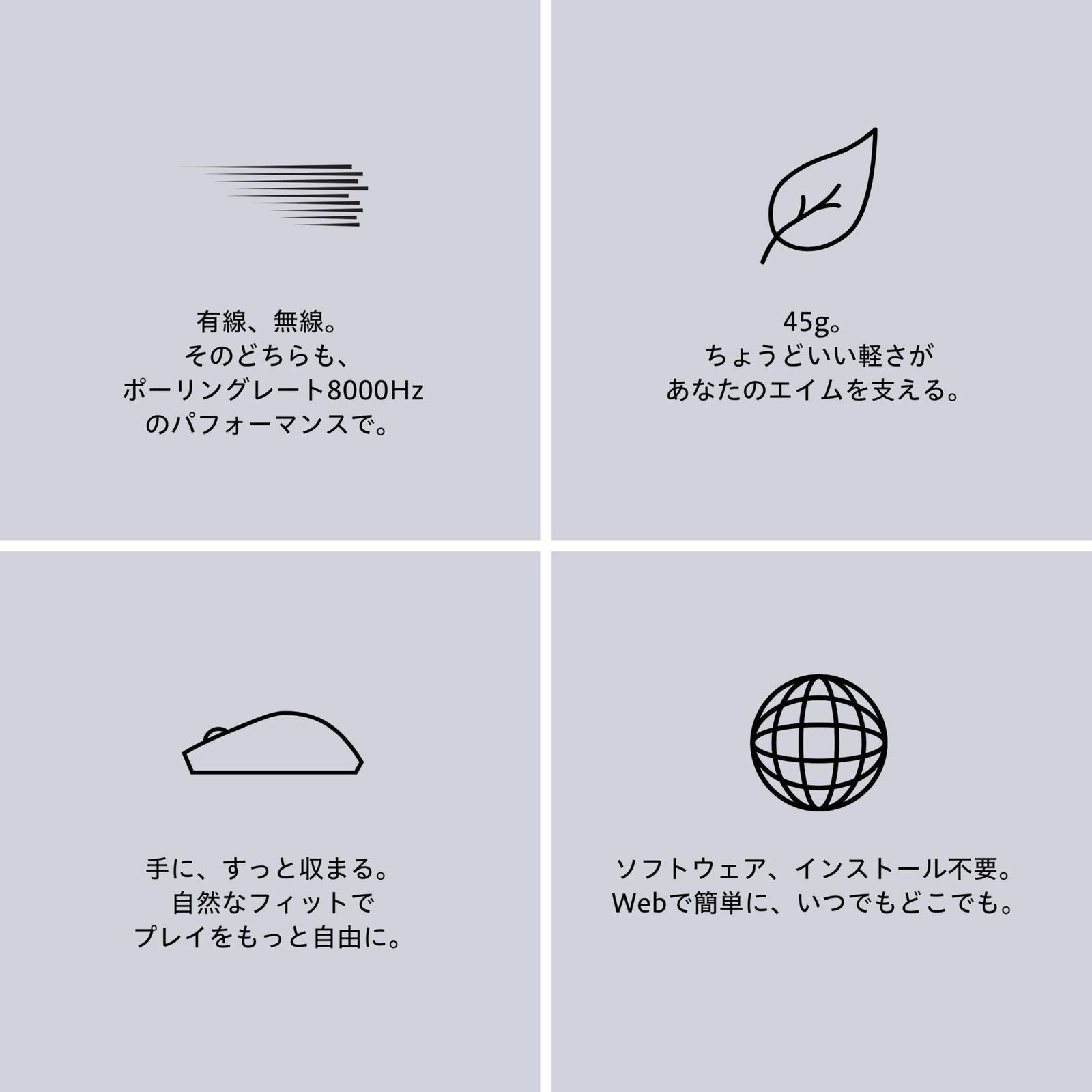 【充実したソフトウェア機能】フルパワーモードやモーションシンクの機能に加え、DPI、ポーリングレート、デバウンスタイム、LODといった設定の調整が可能な時雨専用のwebドライバーを用意。ワイヤレスでありながらゲームマウスとしての細かなカスタマイズ性も万全。直感的な操作で最高のパフォーマンスを引き出せます。