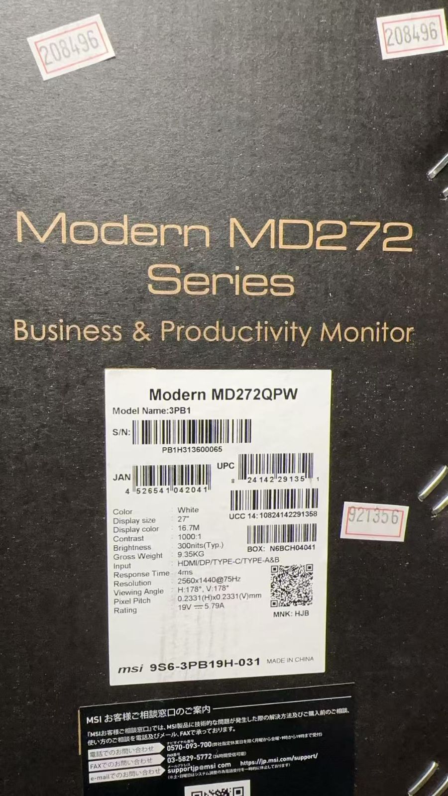 MSI モニター 27インチ WQHD 薄型 IPSパネル 921356