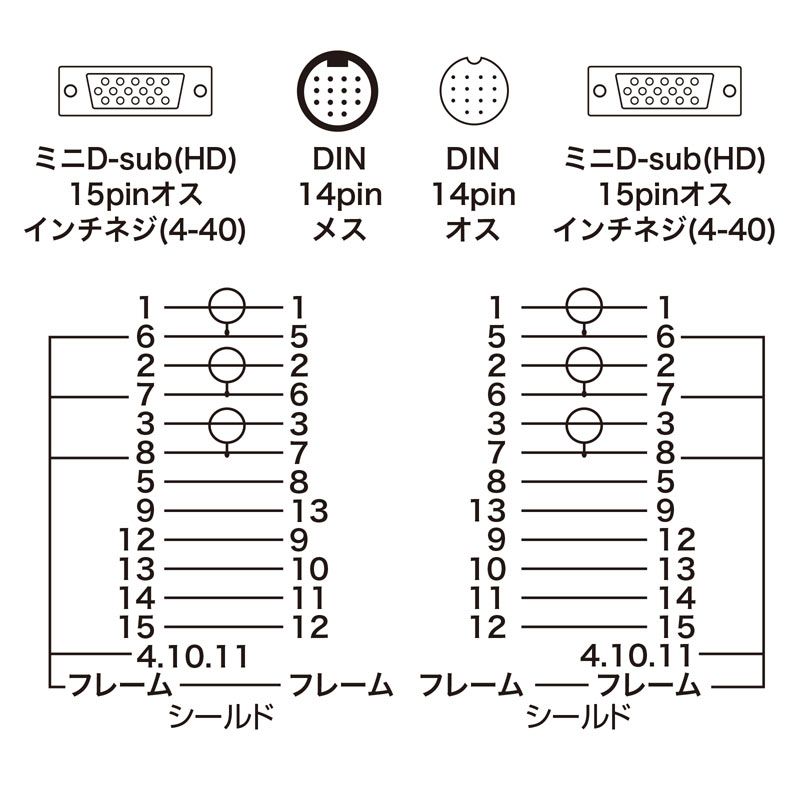 ミニD-sub(HD)15pinオスインチネジ(4-40)-DIN14pinオス
